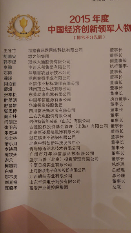 訊網網絡董事長王冬竹 榮獲“2015年度中國經濟創新領軍人物”